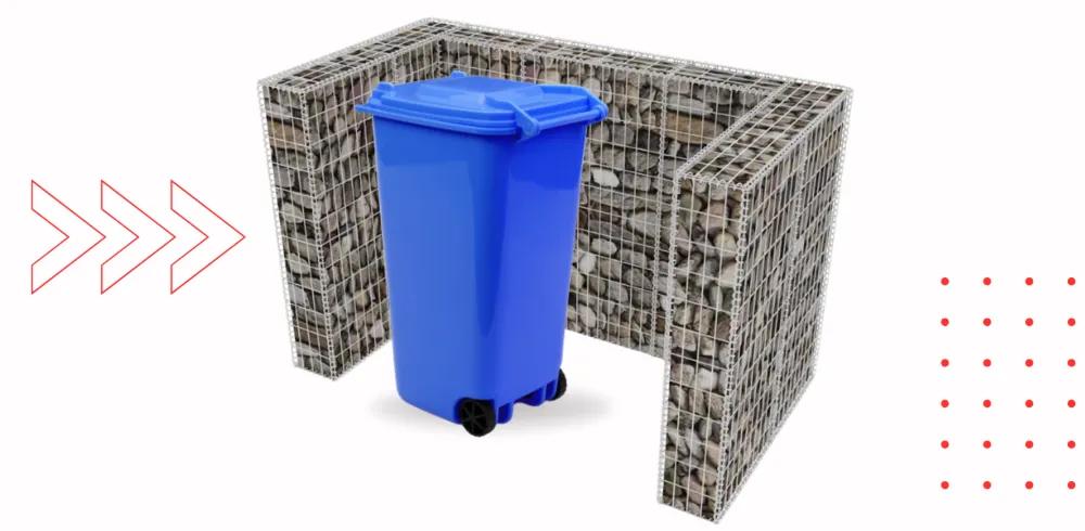 Jak połączyć funkcjonalność z estetyką w przestrzeni na kosze na śmieci? Gabionowa osłona na kosze na śmieci chroni pojemniki i dodaje otoczeniu nowoczesnego charakteru.